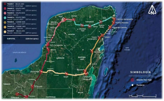 Cover area:The Mayan Train route is divided into 7 sections that pass through the states of Campeche, Chiapas, Tabasco, Yucatán, and Quintana Roo in Mexico